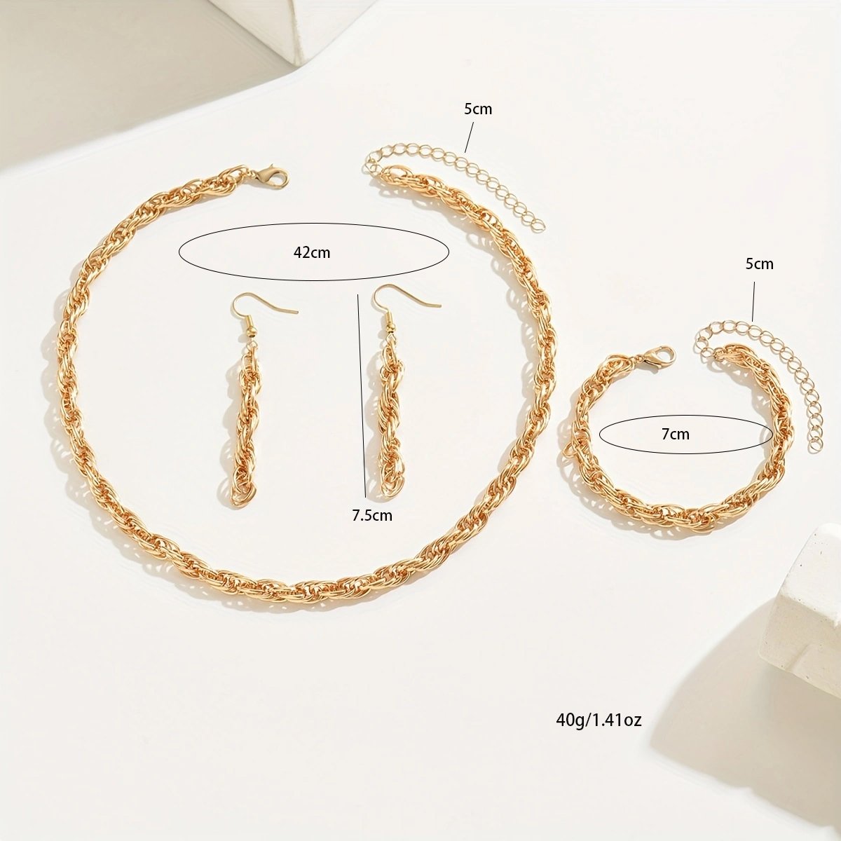Elegant 14K Gold Coated Linked Chain Jewelry Set for Neck, Wrist, and Ears