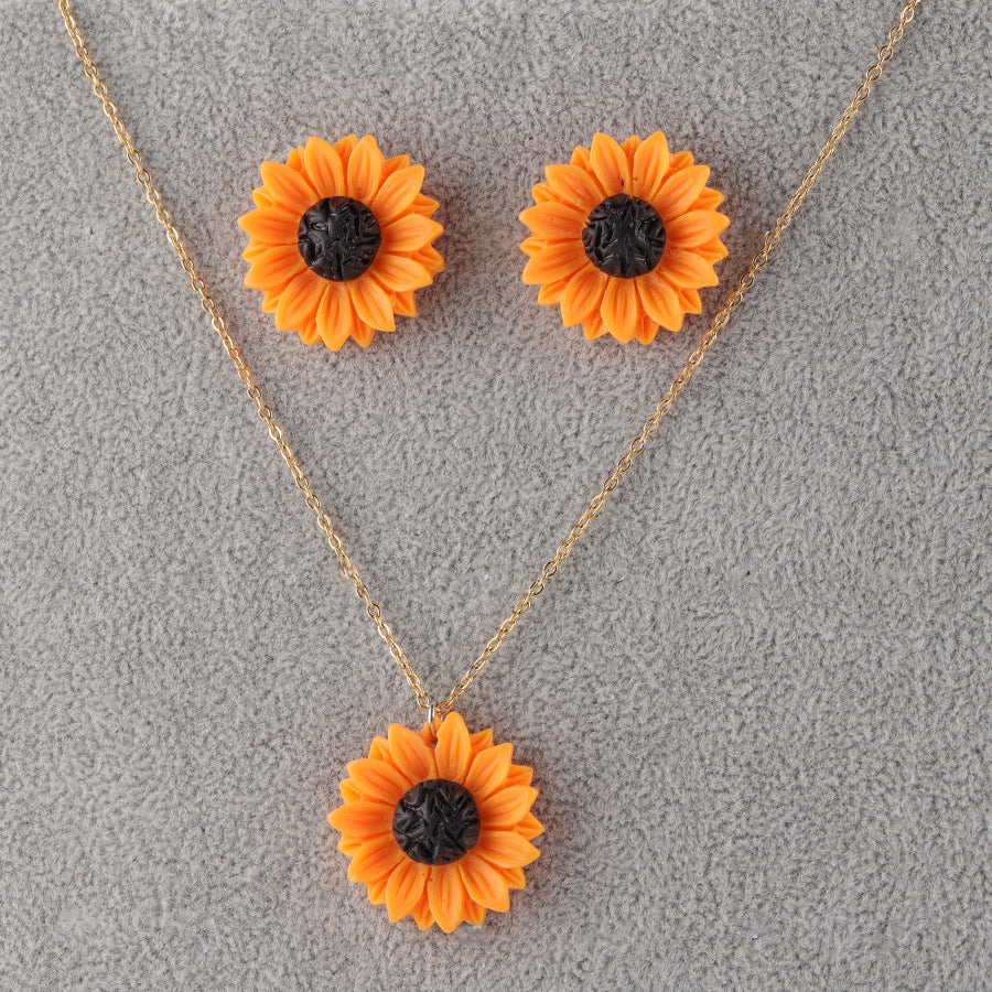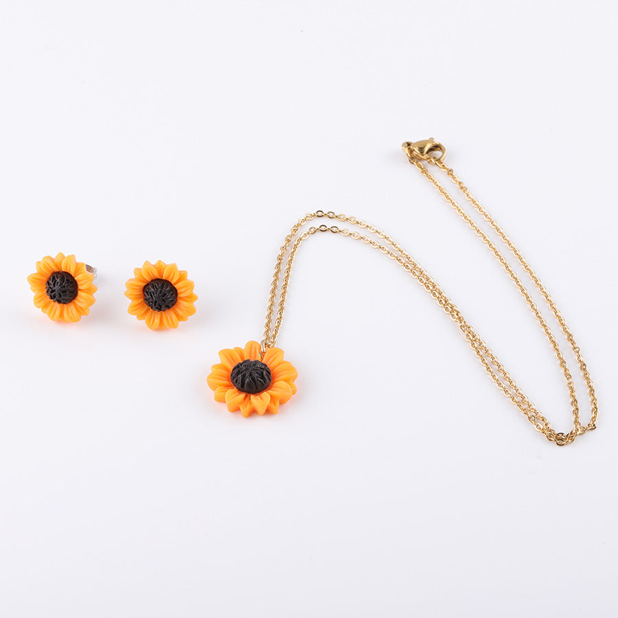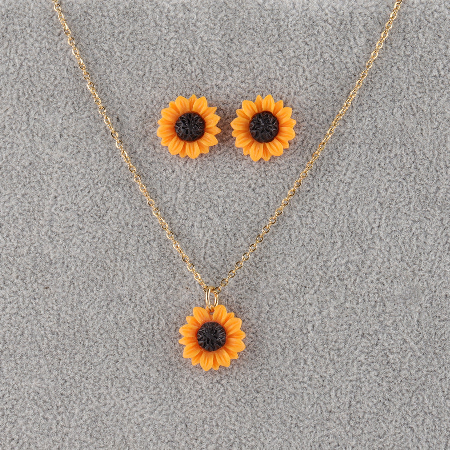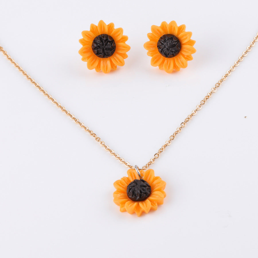 Golden Sunflower Jewelry Set Floral Necklace Earrings